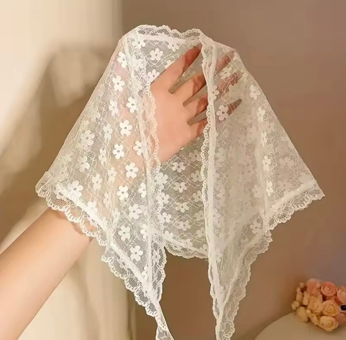 フラワーレース刺繍バブーシュカ