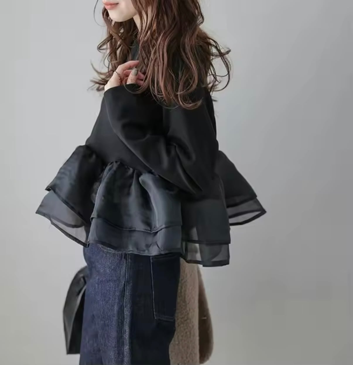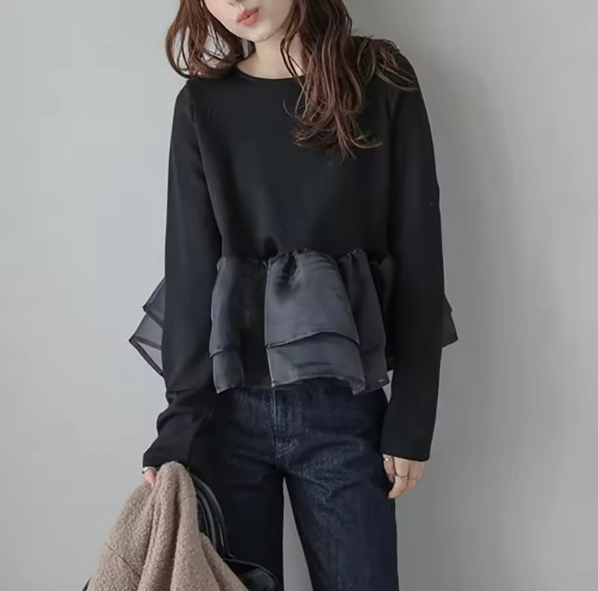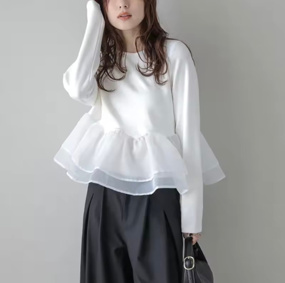 3color / シアーフリルペプラムトップス サイズ / フリーサイズ カラー / ブラック、ホワイト、グレー