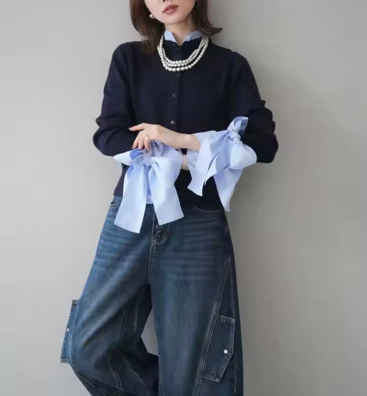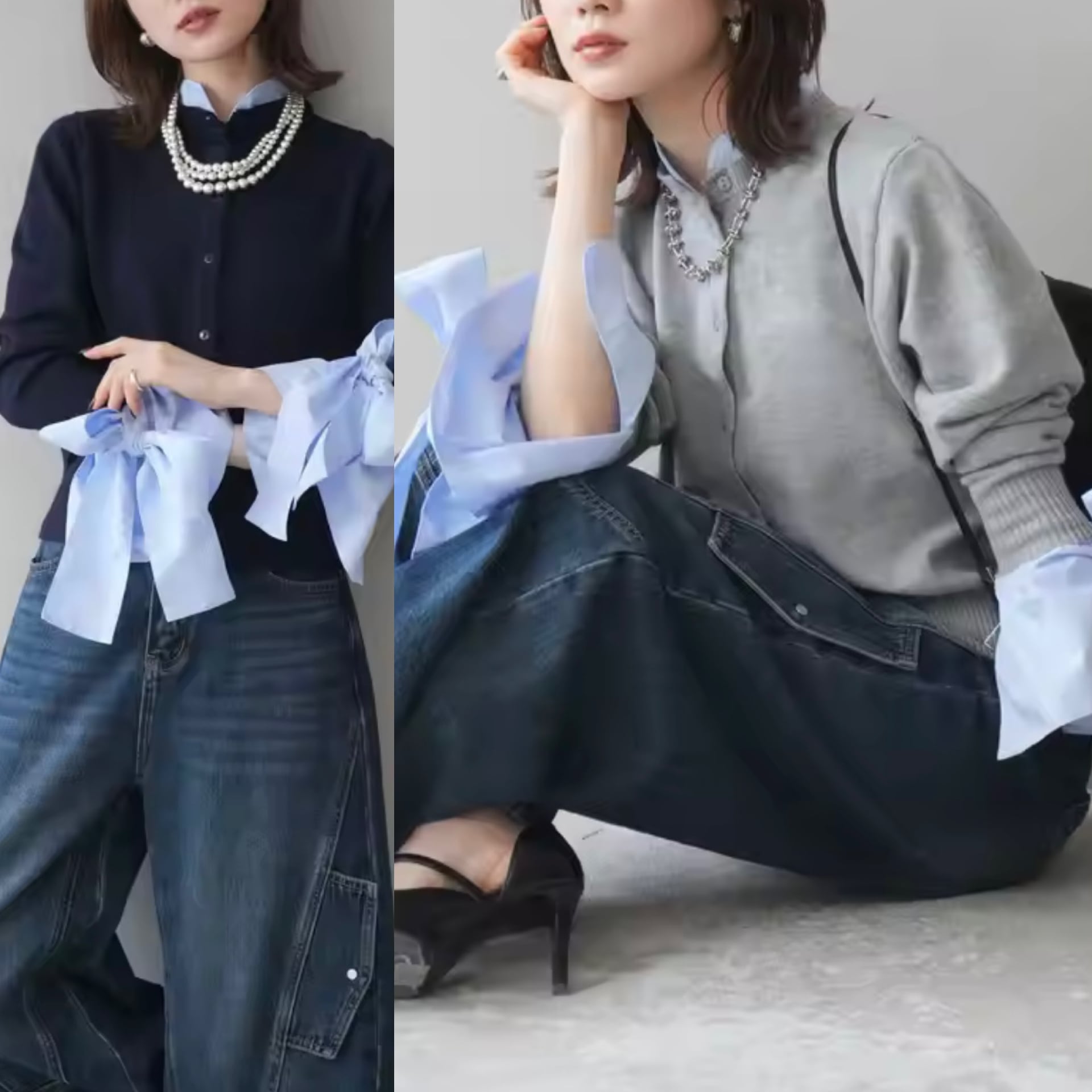 2color / シャツドッキングニットカーディガン ◼︎サイズ フリーサイズ ◼︎color ネイビー グレー
