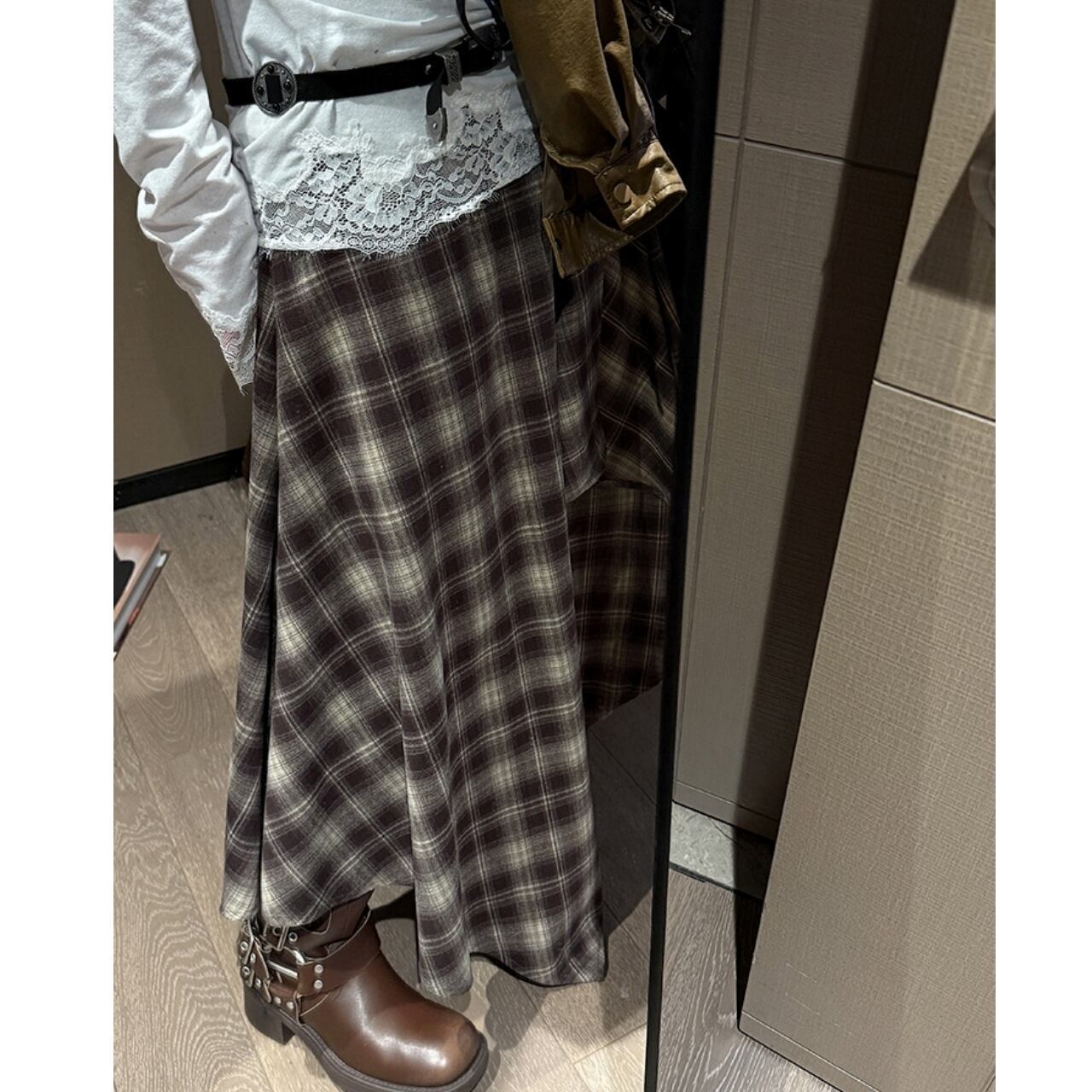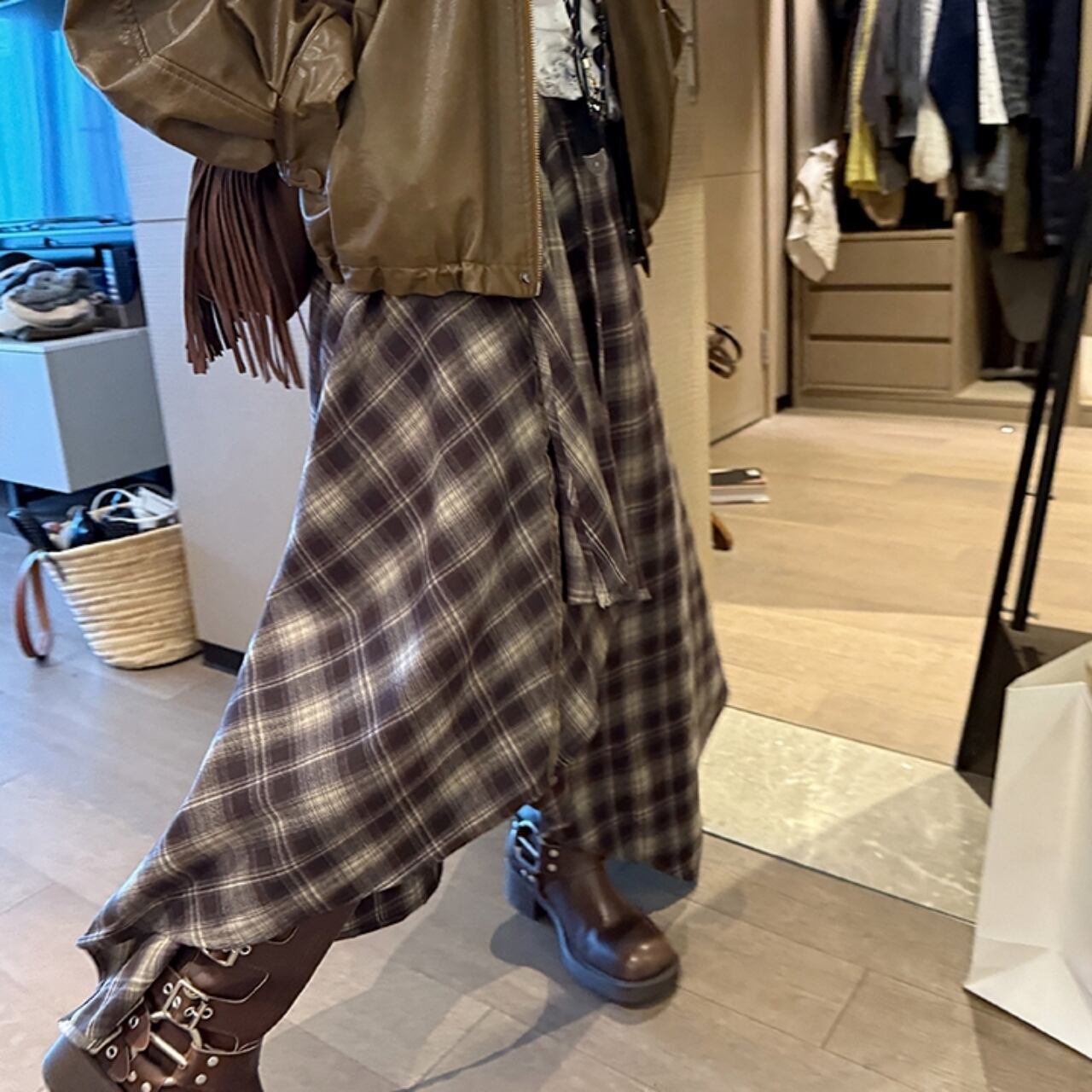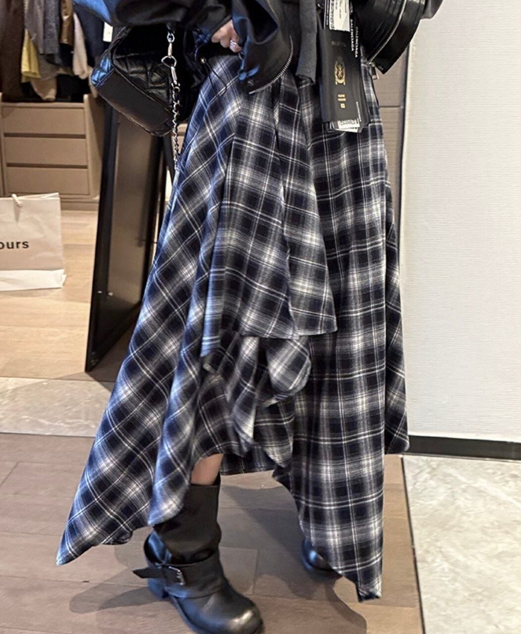 チェックアシメントリースカート / 2color ◼︎カラー ネイビー ブラウン ◼︎サイズ S〜Lサイズ