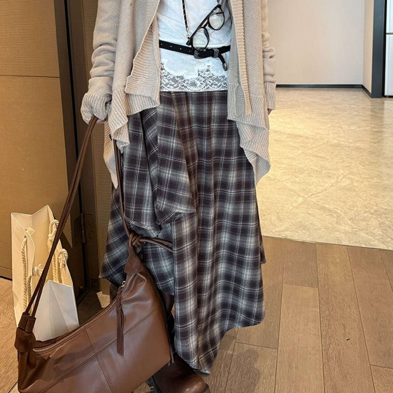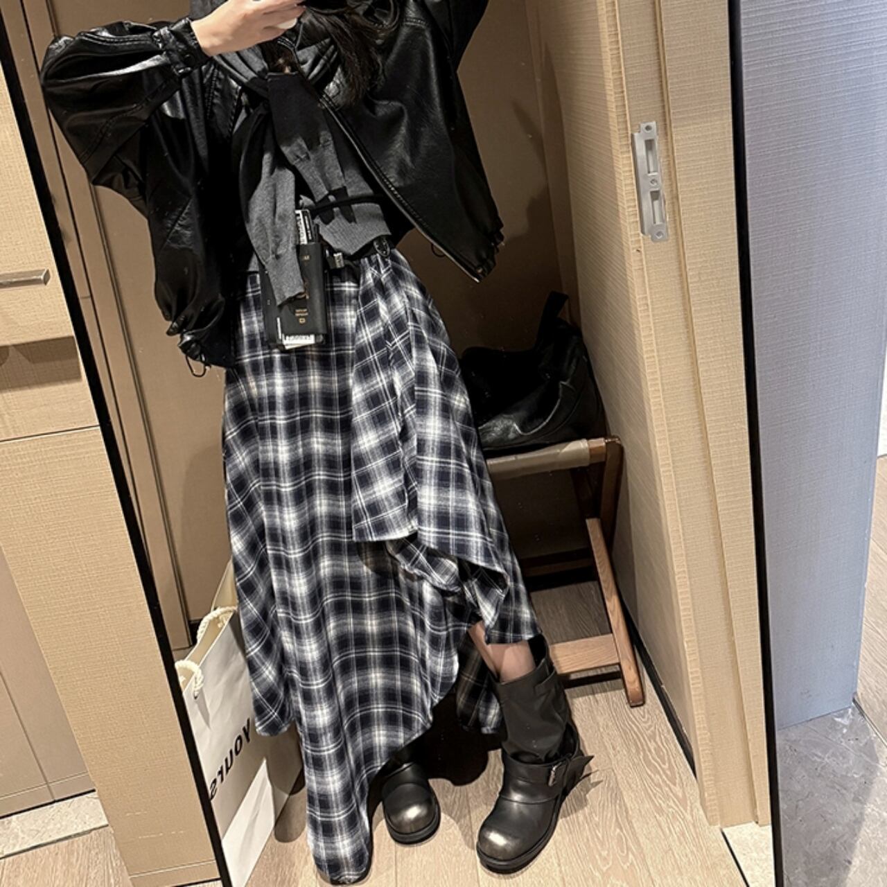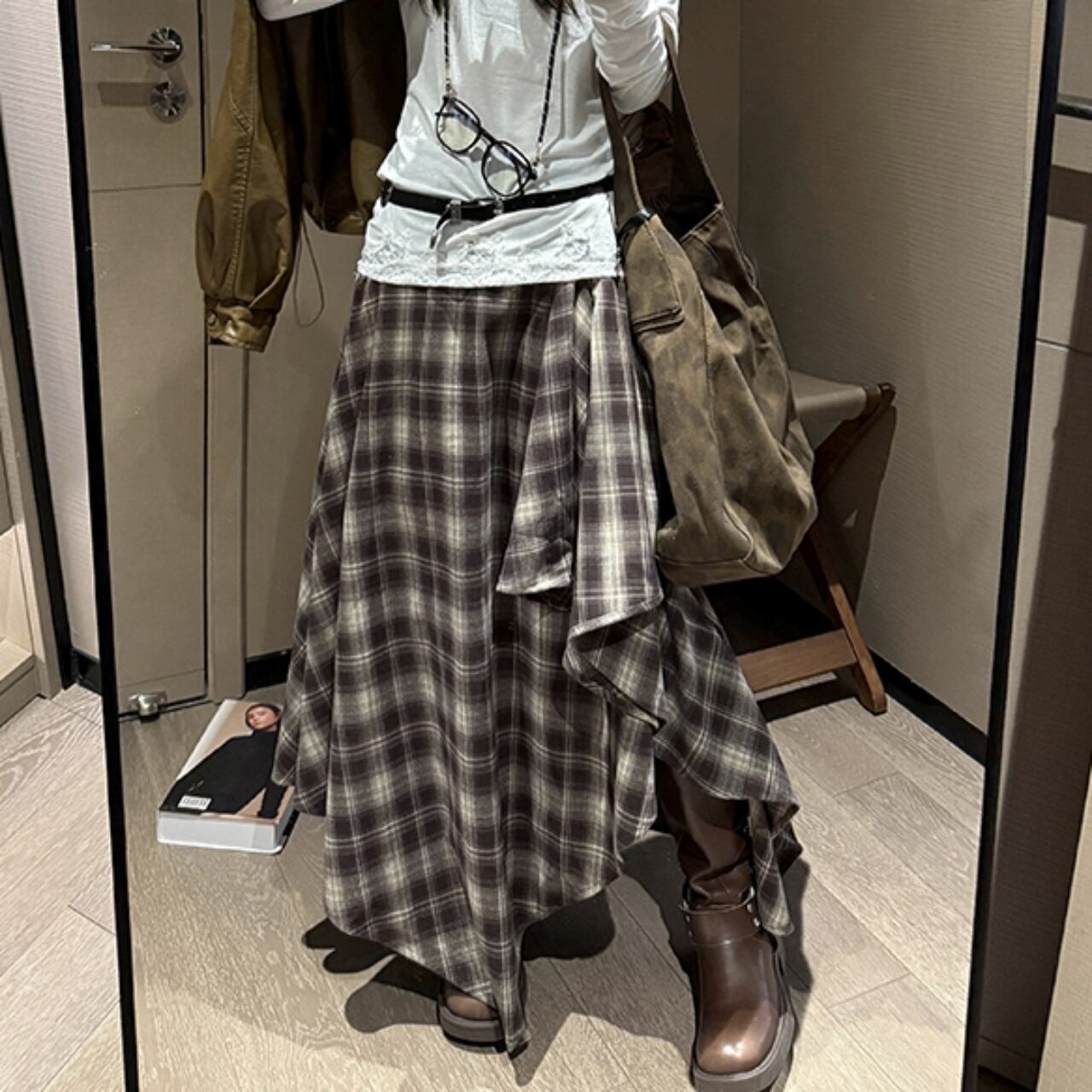 チェックアシメントリースカート / 2color ◼︎カラー ネイビー ブラウン ◼︎サイズ S〜Lサイズ
