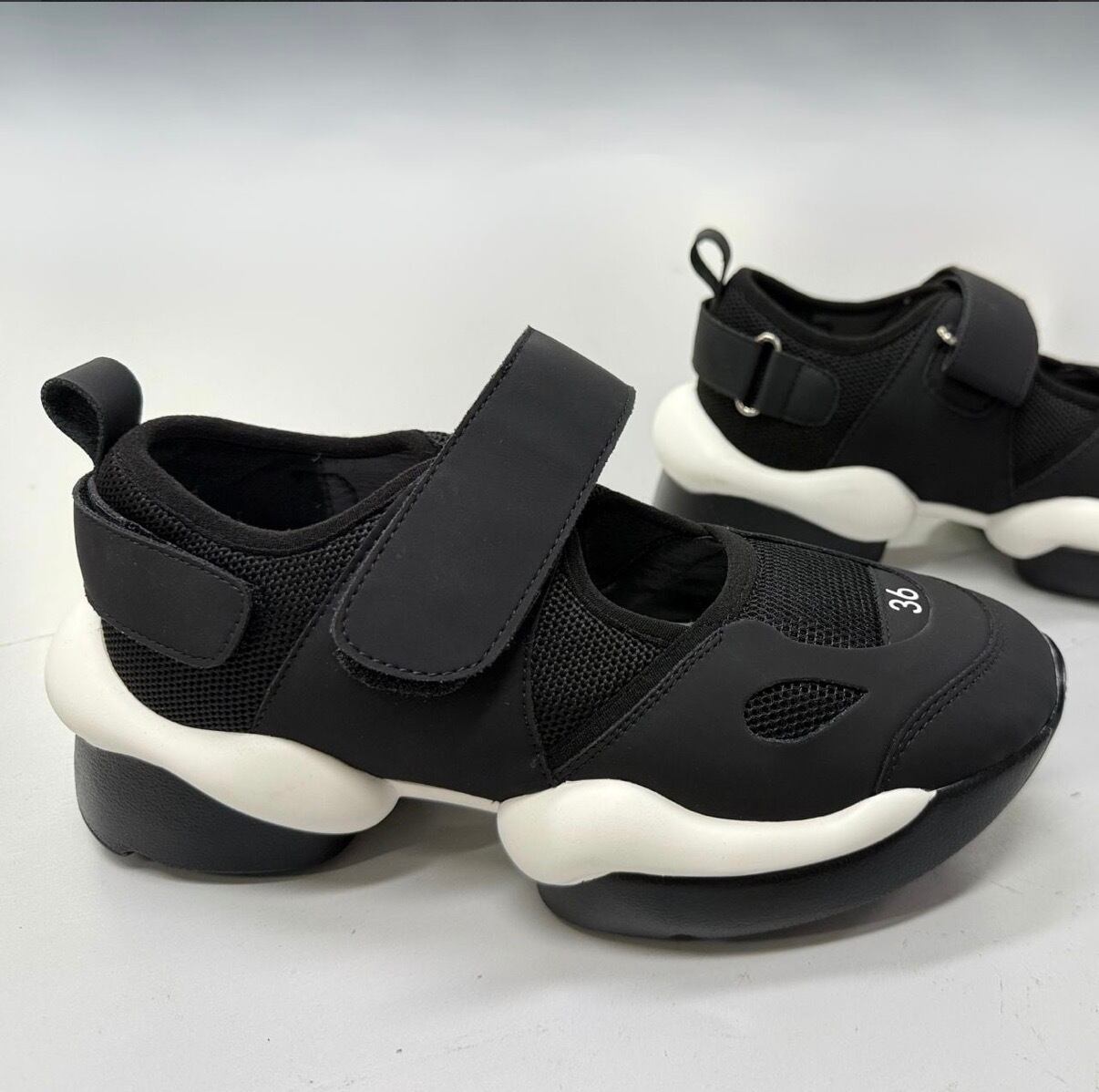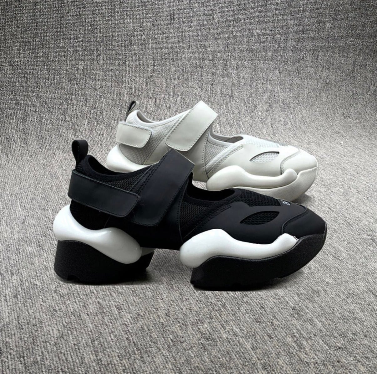ボリュームソールシューズ / 2color ボリュームソールがトレンド感を加速させるベルクロダッドシューズ。快適な履き心地と安定感が魅力で、カジュアルにもモードにも馴染む万能アイテム。足元に存在感を。 ◼︎サイズ 22㎝〜24.5㎝ ヒール高7cm 【カラー】 ブラック ホワイト