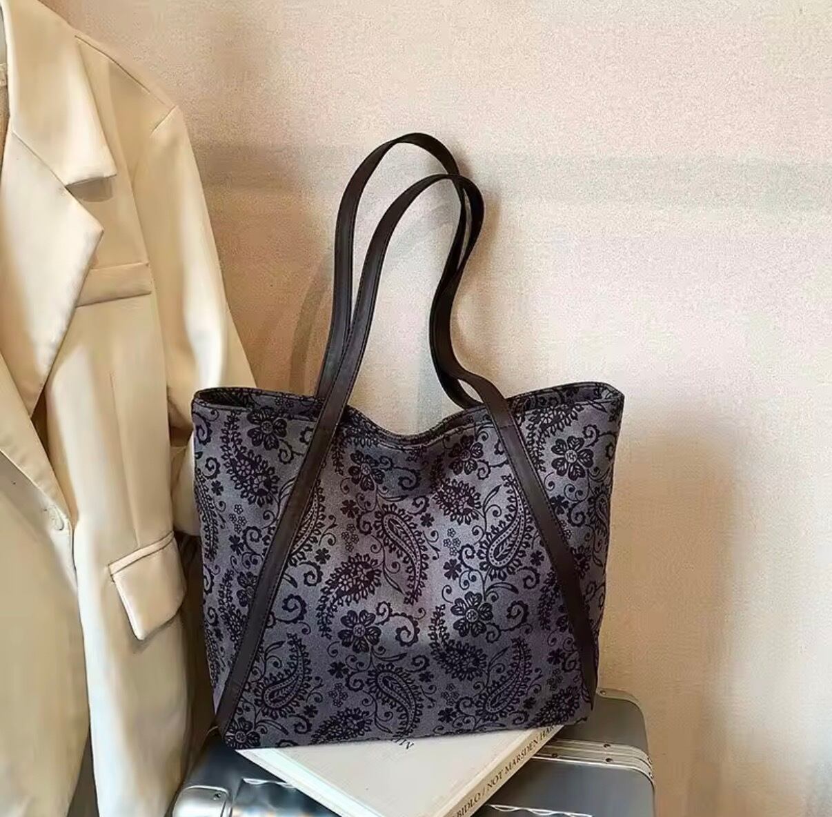 ペイズリートートバッグ / 3color ◼︎カラー ホワイト グレー ブラウン ◼︎サイズ ワンサイズ