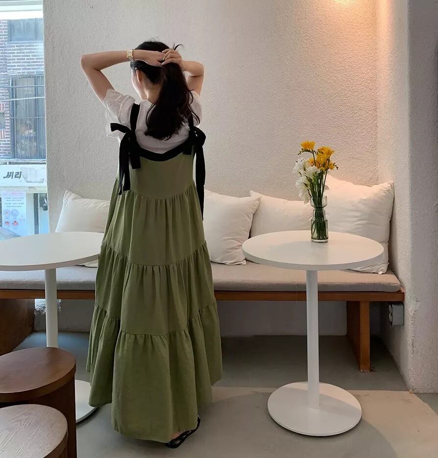 さらっとした生地で夏〜秋にぴったりの一枚です。肩紐で長さ調整出来るのでお好みの長さに合わせて着て頂けます◎1枚で着るのはもちろん、Tシャツと合わせてカジュアルダウンさせたりジャケットを羽織ってフォーマルに着ても◎