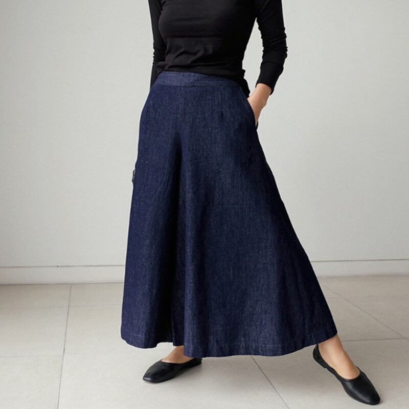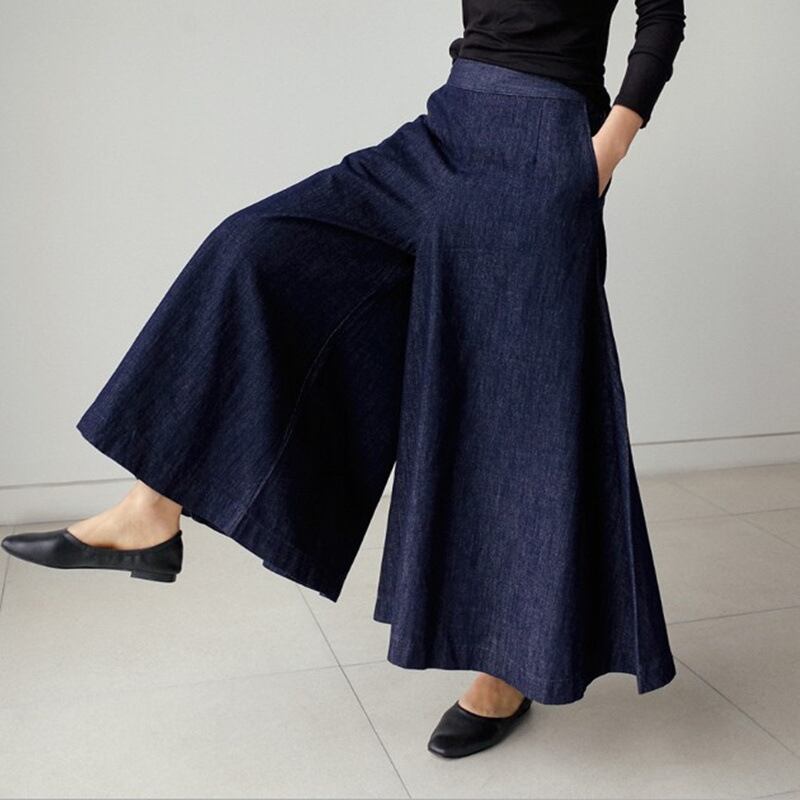 【4サイズ】インディゴデニムフレアワイドパンツ