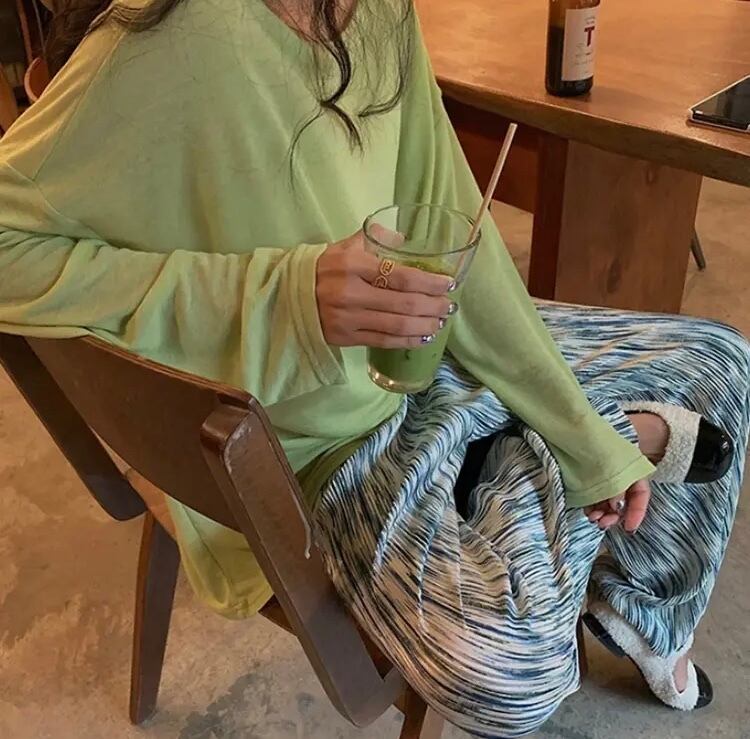 ニュアンス柄が可愛いプリーツパンツ。シンプルなトップス合わせはもちろん、ワンピース合わせもこなれ感がでて今っぽく着て頂けます◎