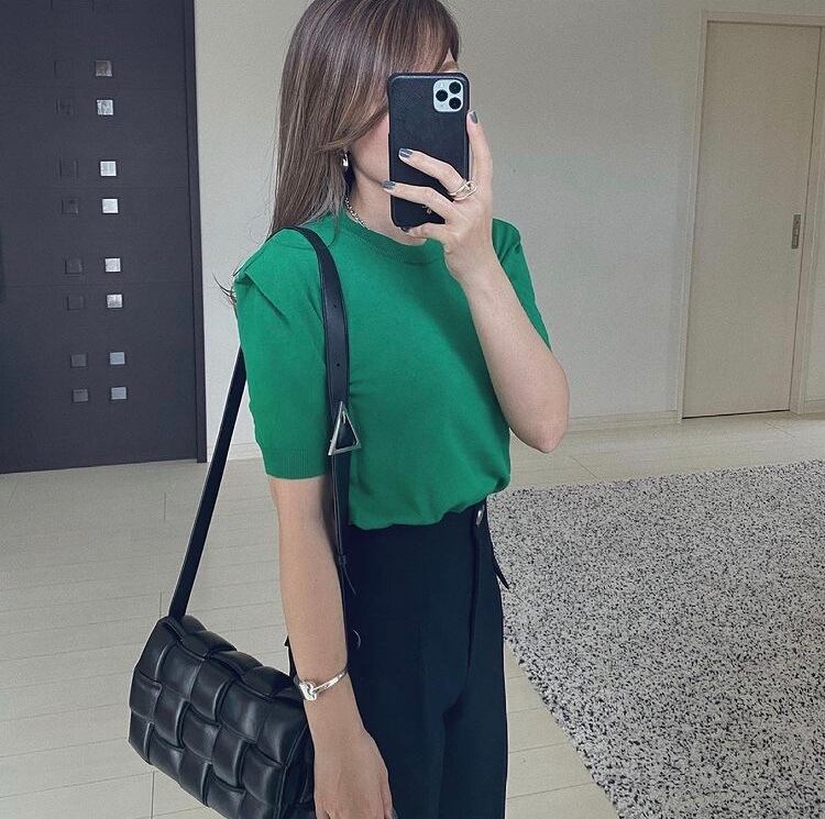 ゆとりのあるサイズ感と、デコルテラインを綺麗に見せるラウンドネックが上品な印象に。大人気のグリーンcolorとパフスリーブが可愛いお洒落な一枚。ボトムを選ばず着回しが効くアイテムです。