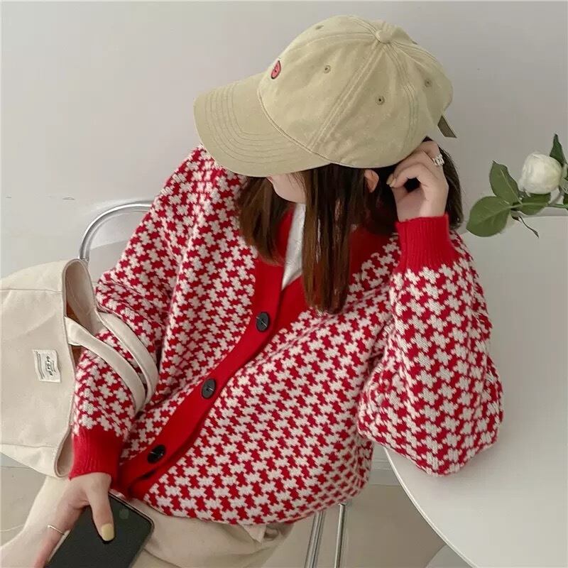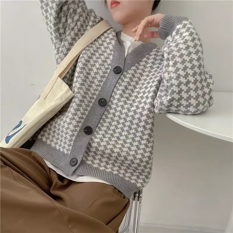 【3color】レトロ柄ニットカーディガン