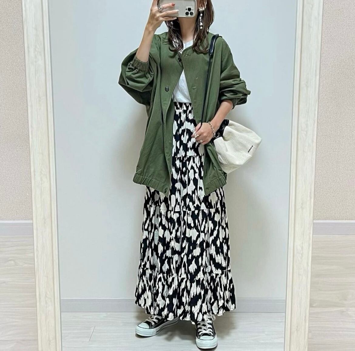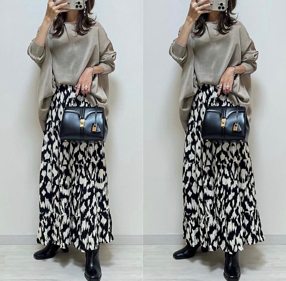 レオパードデザインが今年らしいプリーツスカート。ウエストゴムで楽な着心地です。ボリュームが出過ぎない程よいフレアシルエットで、この一着でトレンドライクなコーデが完成します。