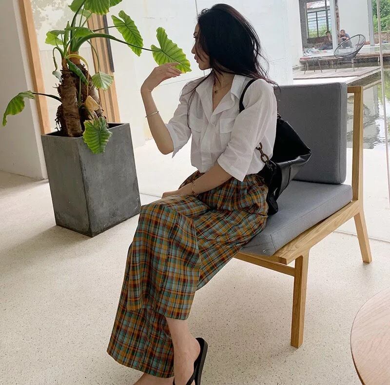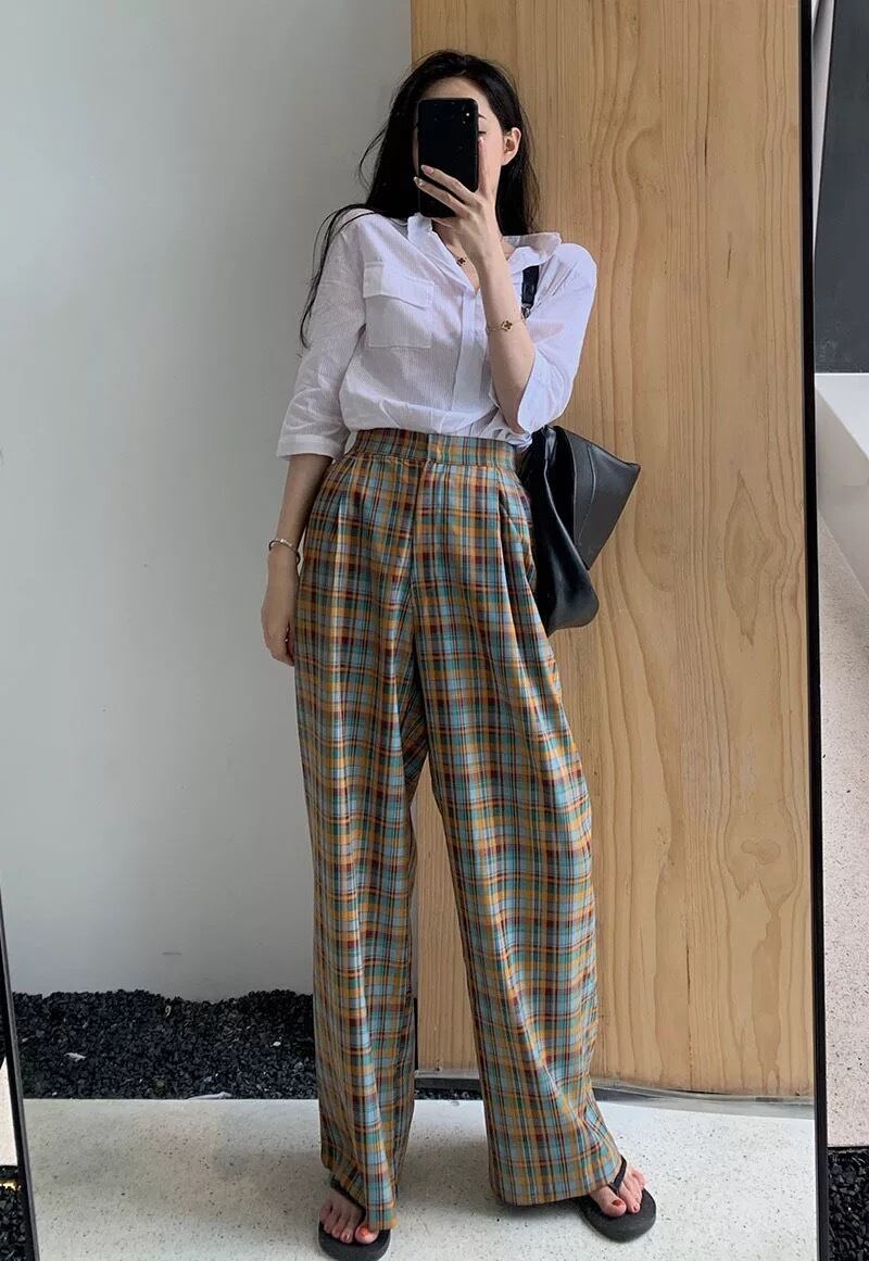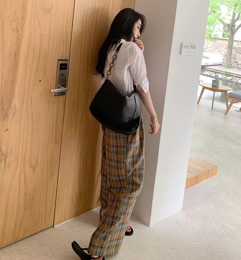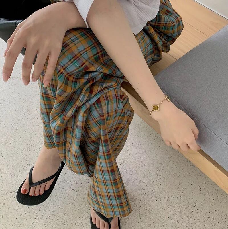 【2サイズ】オータムチェックワイドパンツ