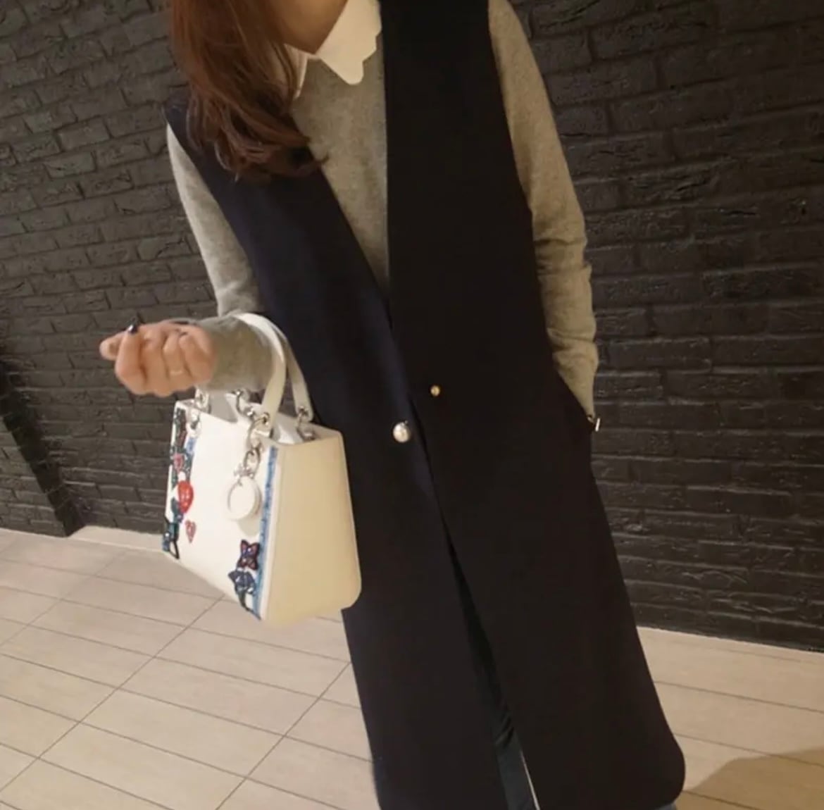 いつものコーデにさっと羽織れる存在感抜群のジレ。とめる部分のパールがポイント。さりげないパールがキュートでレイヤードスタイルを楽しめてロングシーズン着用いただけるアイテムです。
