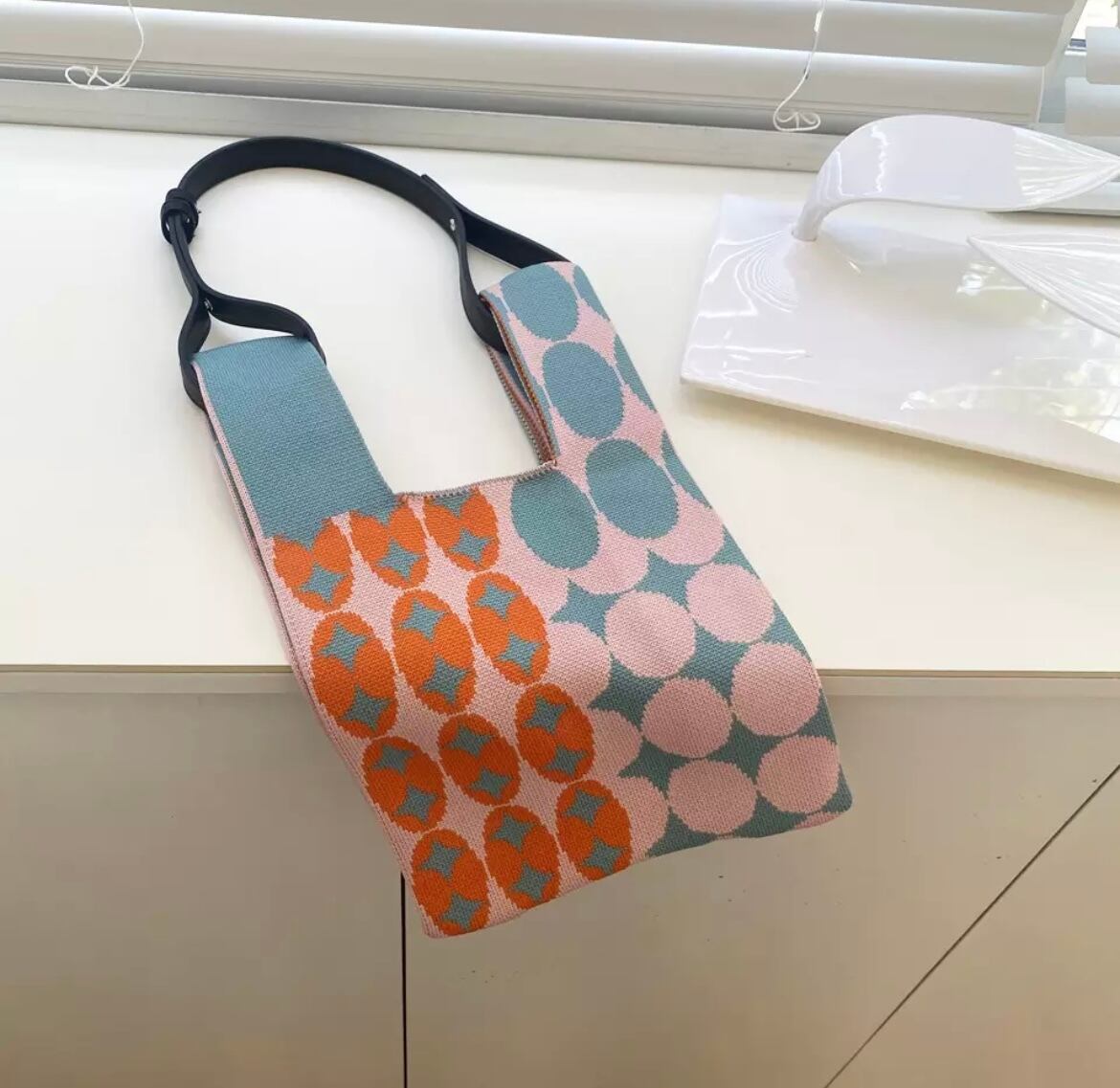 【5color】ブラックショルダー付き ニットマルシェバッグ