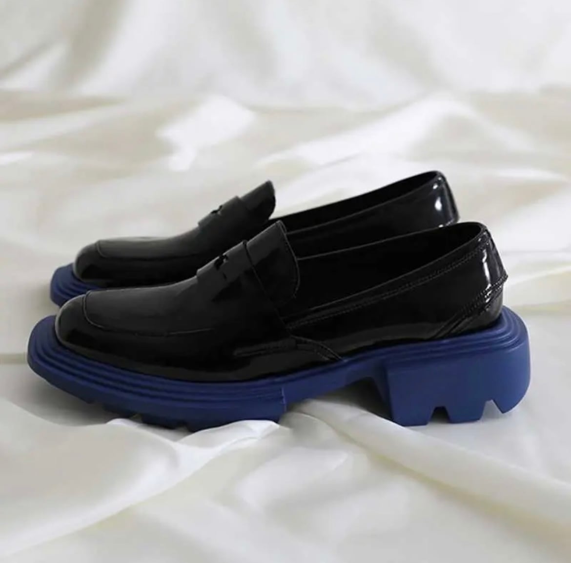 靴底カラースクエアデザインローファー