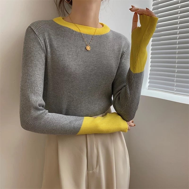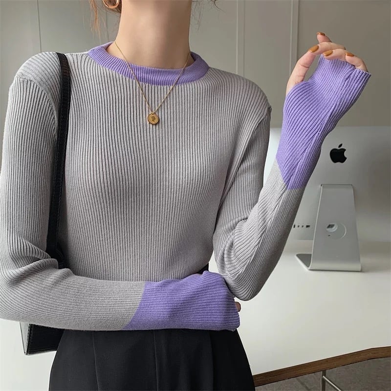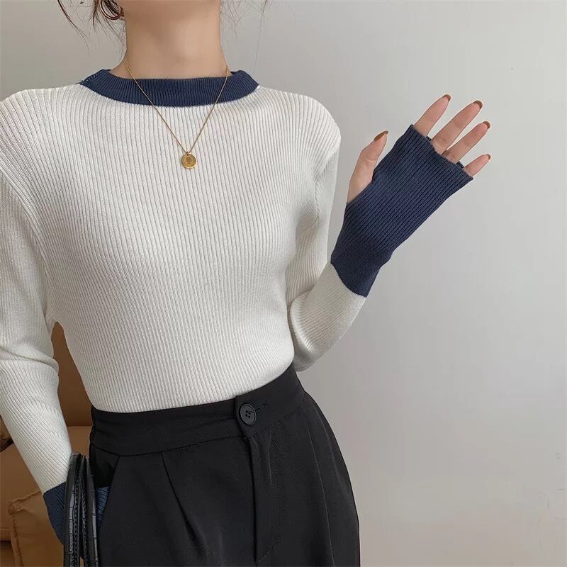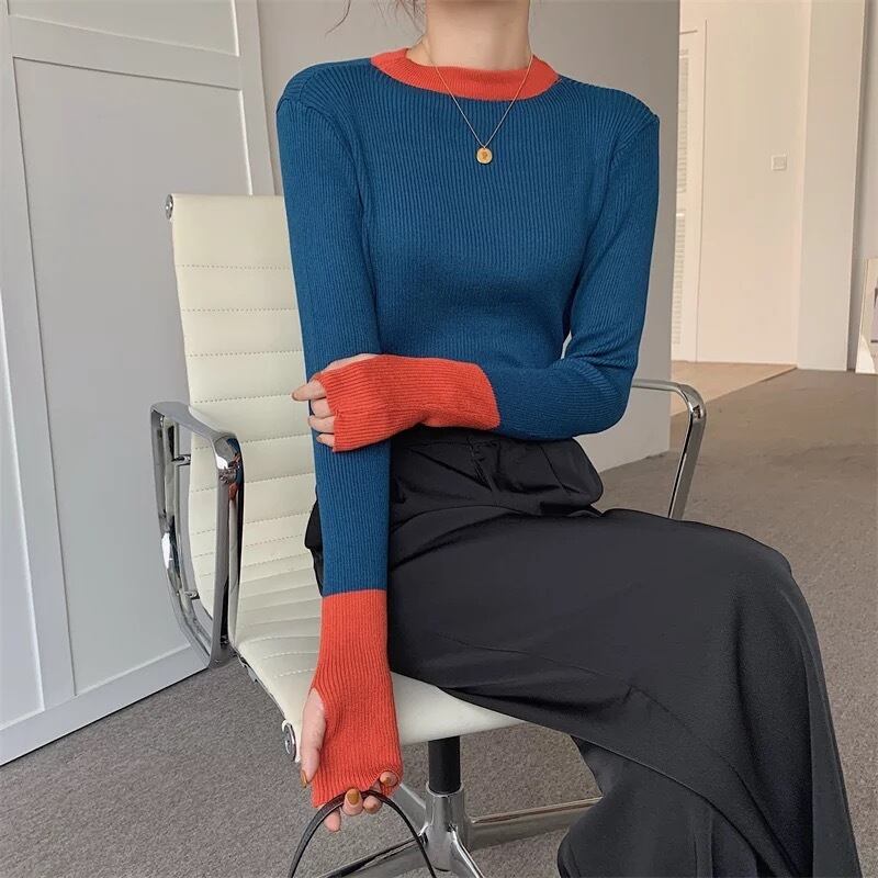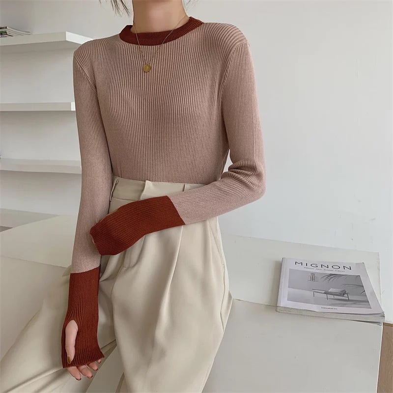 6color / バイカラーフィンガーホールニットトップス