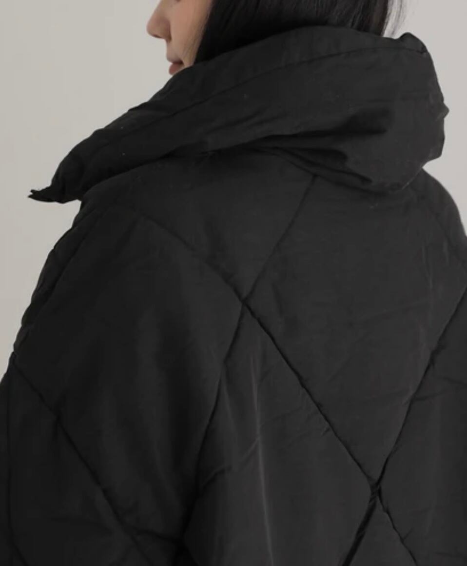 気負わずさっと羽織れる中綿ジャケットです。大きめのサイズ感ですが、シルエットが綺麗なので着膨れしにくいのも嬉しいポイント。大きめの衿で小顔効果も◎