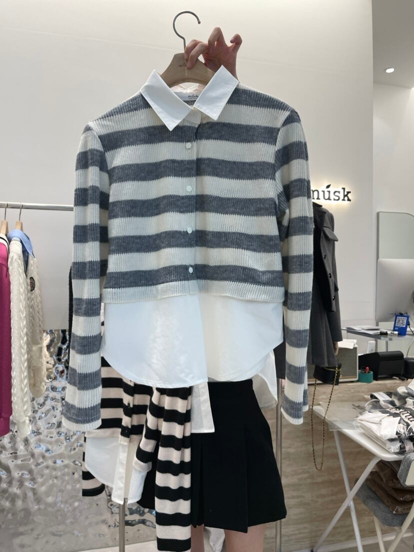 2color / シャツドッキングボーダートップス