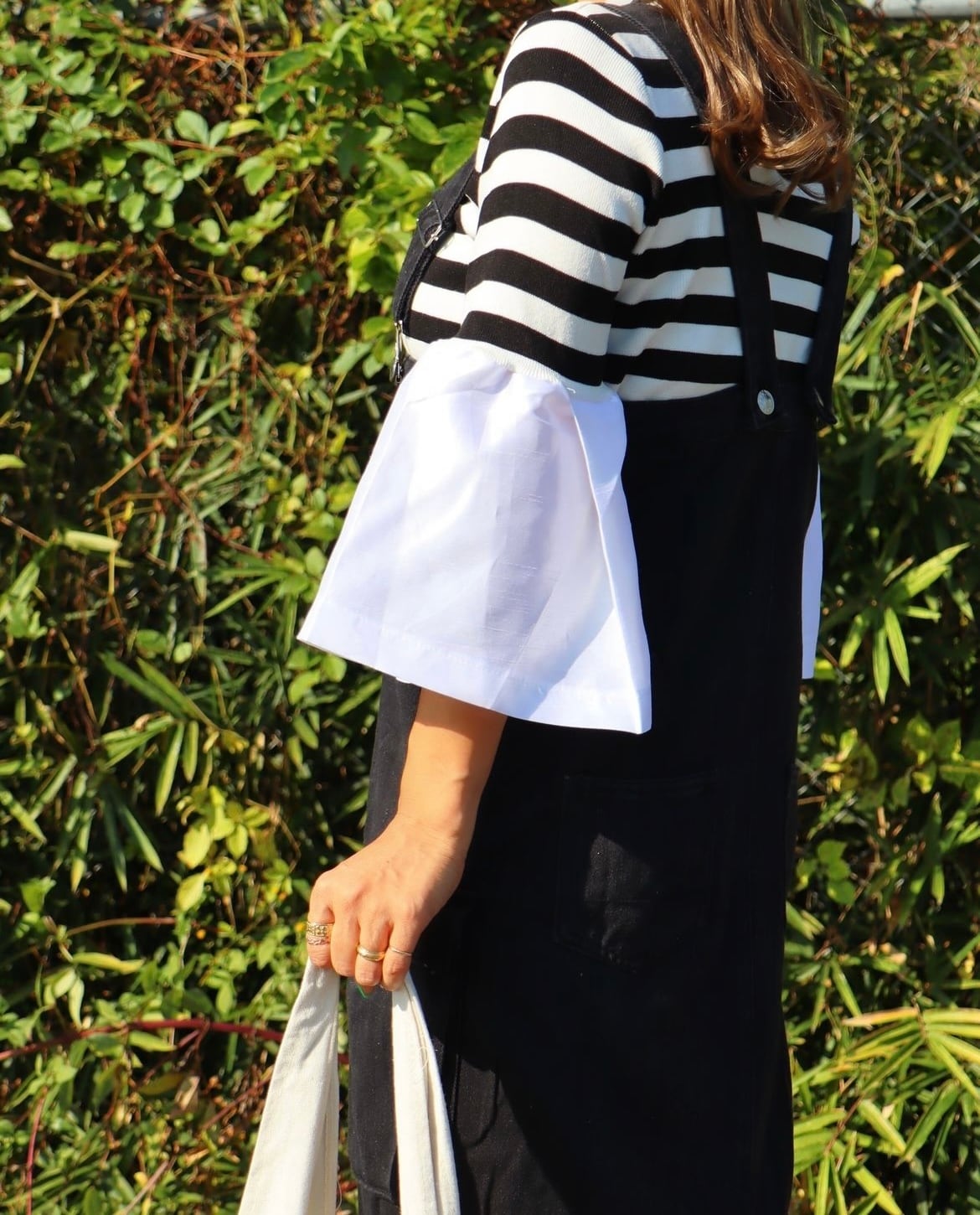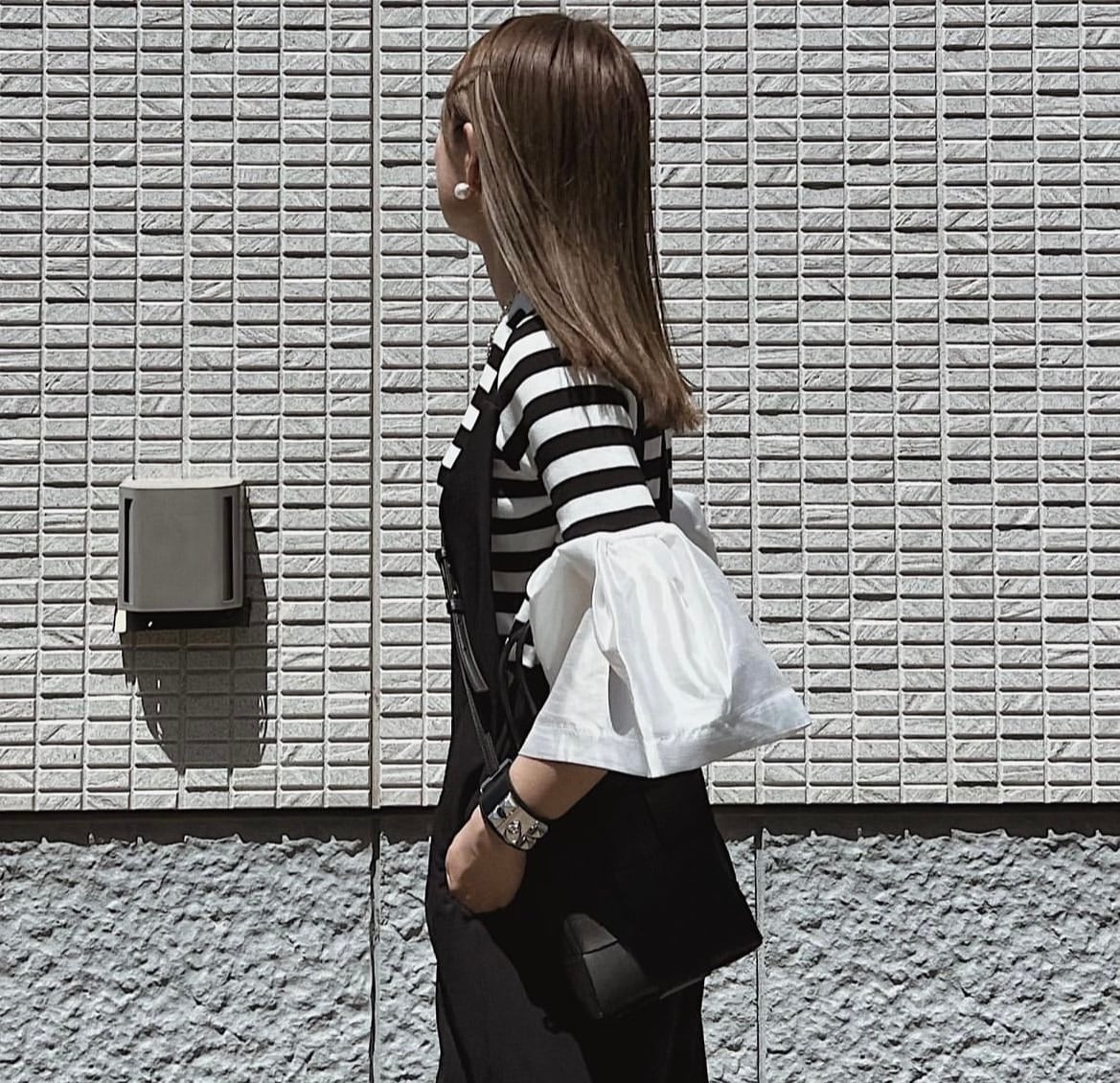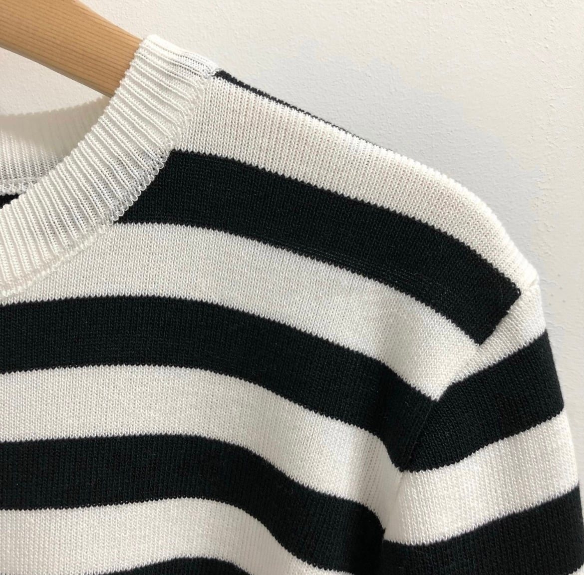 今季トレンドの袖コンシャススタイル。袖先部分のみ艶感のあるさらりとした素材と厚すぎず薄すぎないしっかりとしたニット生地でロングシーズン着て頂けます。