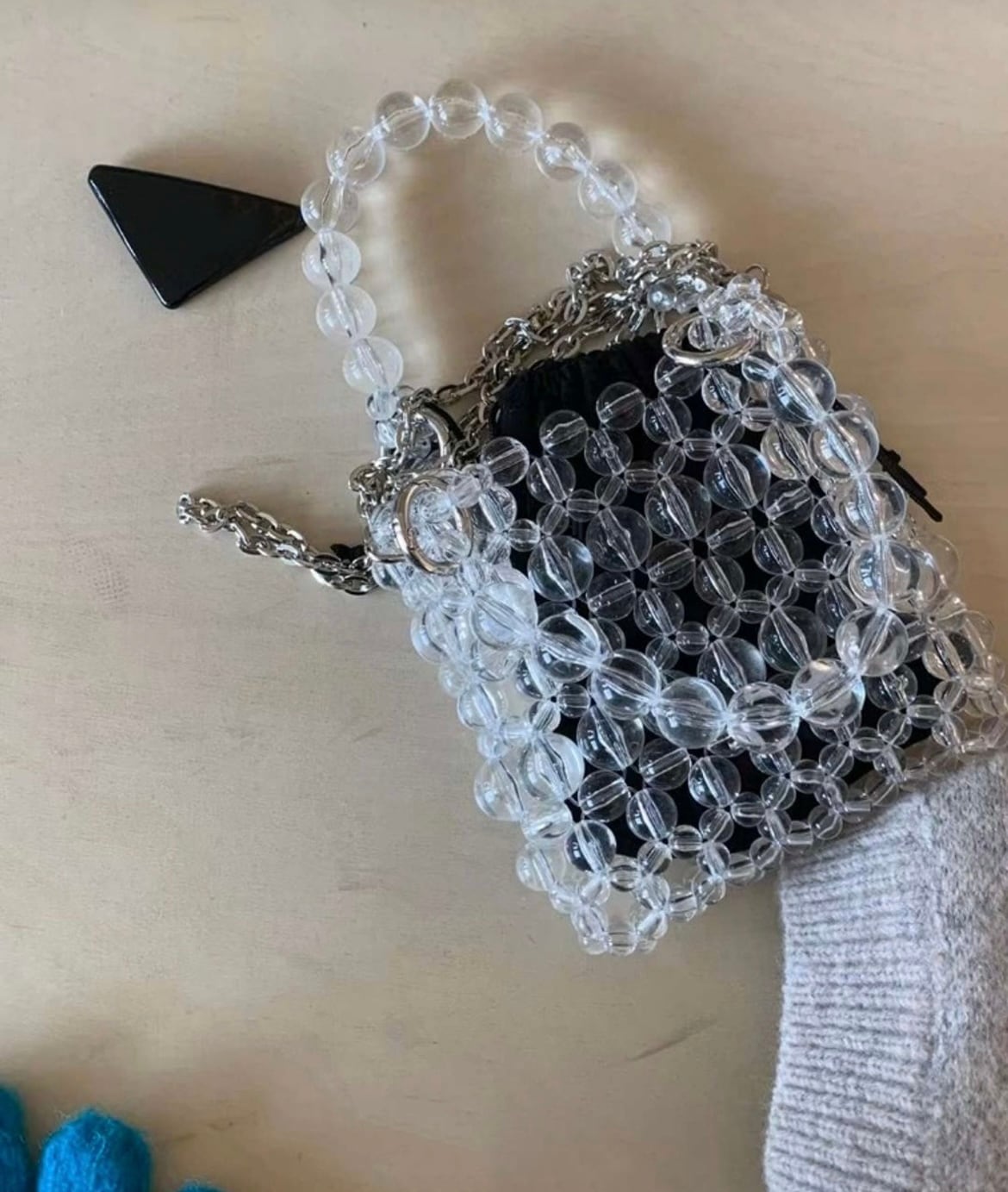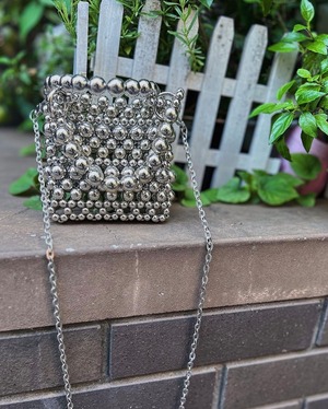 大小のボールビーズが組み合わさったお手頃サイズのミニバッグです。付属のチェーンでショルダーバッグに、チェーンを外してミニバッグとしてお使い頂けます。インナーバッグも付属するので細かな物まで収納可能です。