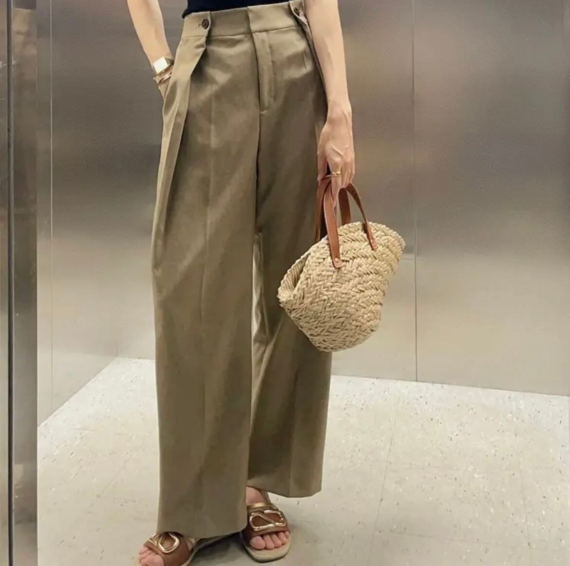 4size / ハイウエストボタンデザインパンツ
