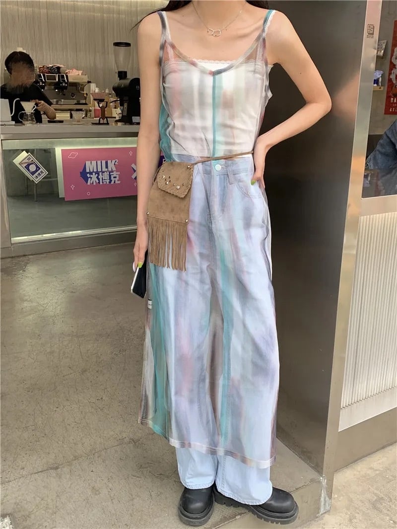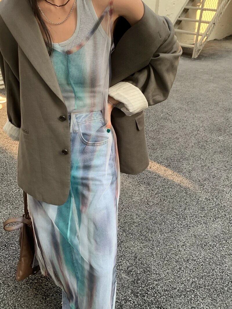 トレンドのタイダイ柄が可愛いシースルーのキャミワンピース になって登場!インナーとレイヤードする事で、長く着ていただけます。ボトム重ねでこなれ感UP!