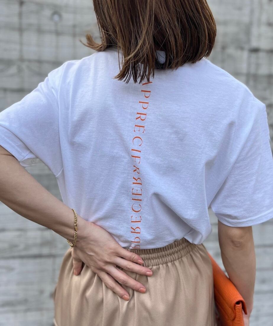 前後のプリントロゴが目を惹くオーバーサイズのTシャツです。