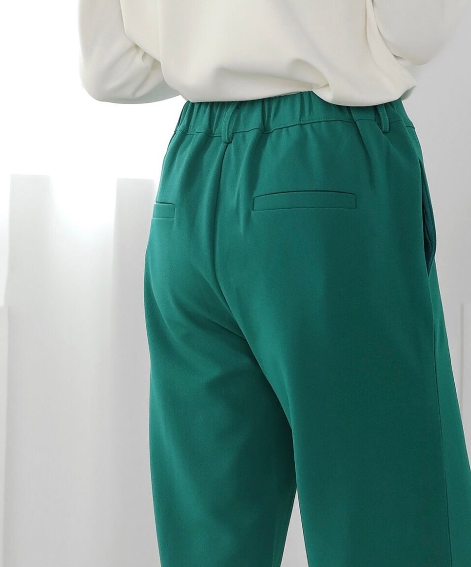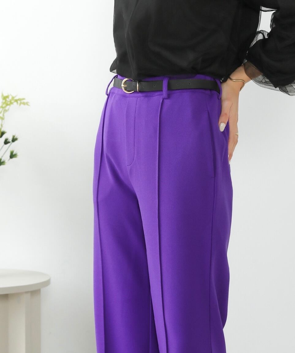 ベーシックなブラックはオフィスやフォーマルシーンにも。 パキっとした鮮やかカラーの2色は、シンプルなトップスでもオシャレに仕上がります。 ブラウスを合わせてキレイめスタイルにも、スウェットを合わせてカジュアルにも、 またスニーカーコーデでスポーティにも、合わせるアイテムでどんなスタイリングも楽しめます。 細身のベルトを通すとアレンジが楽しめて足長効果も期待できます。