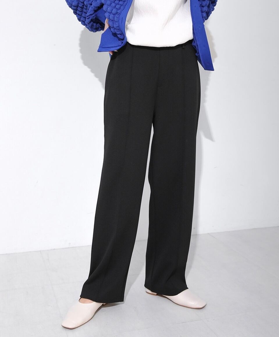 ピンタックが入ることでジョグパンツがきれいめ仕様に。 心地良いストレッチは動きやすさ抜群で、さらにスタイルアップも叶えます。 ストンとした落ち感があり、太もも部分まで裏地がついているのでラインを拾いにくいのも嬉しいポイント。 また、ストレッチパンツには珍しくベルトループがついているので、 ベルトを通していただくことで、よりきれいめなピンタックパンツに仕上がります。 普段使いはもちろん、オフィスシーンにも対応可能です。 イージーケアでしわにもなりにくいので、旅行等にも最適。