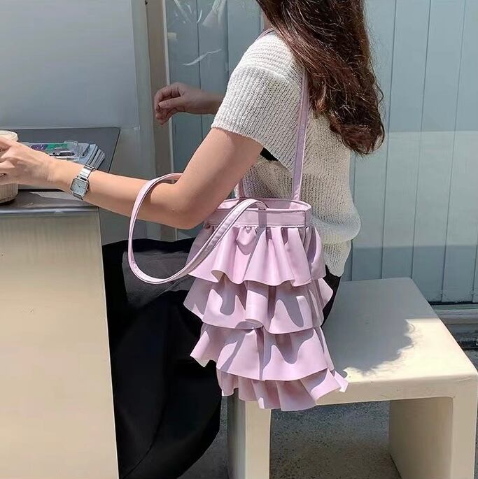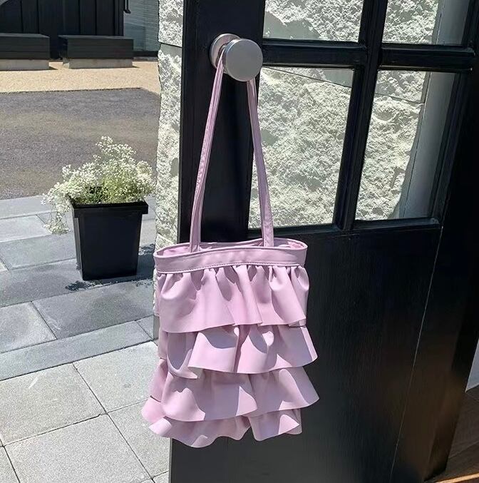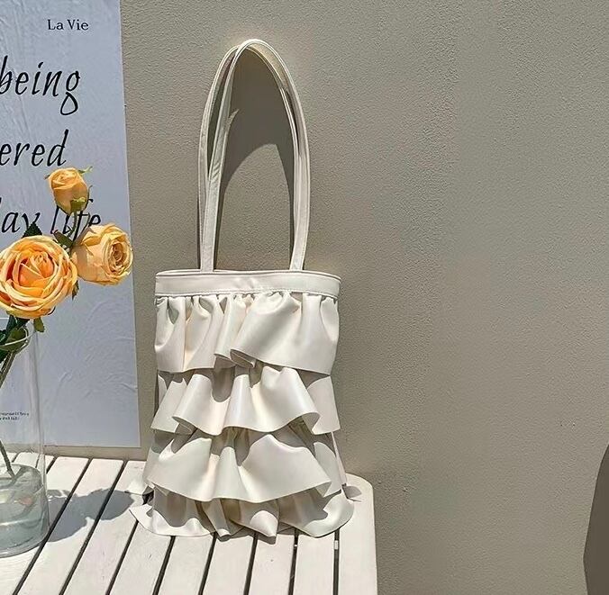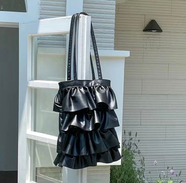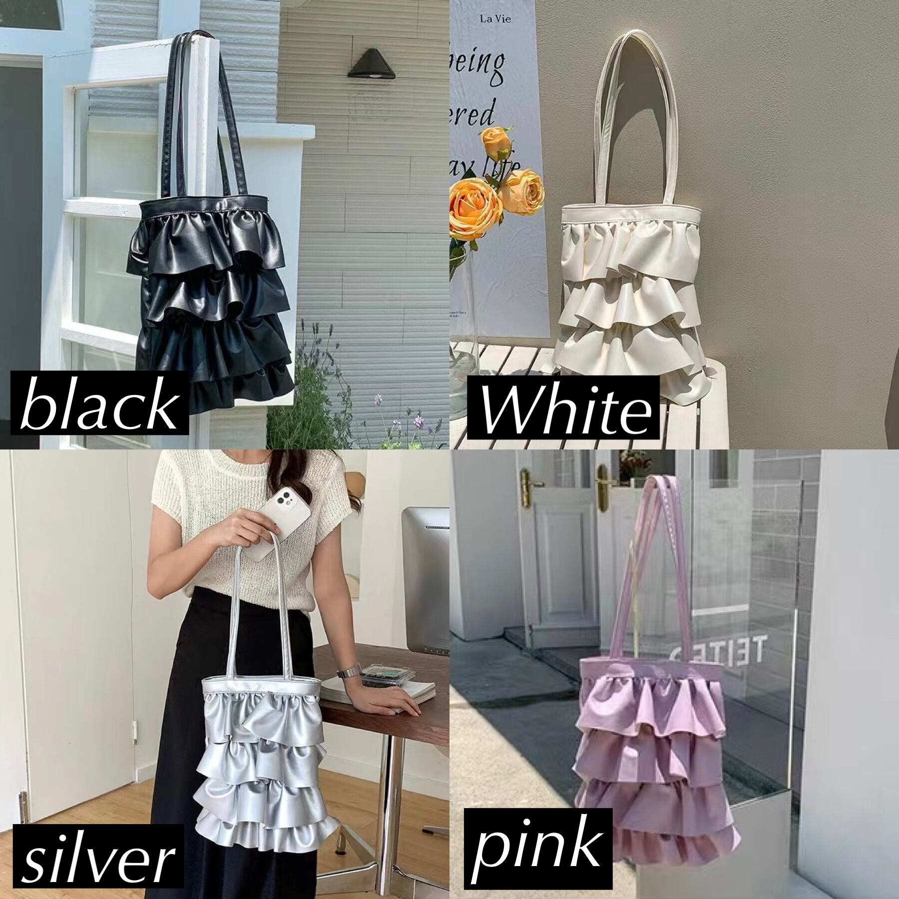 ボリュームを抑えたフリルが大人可愛いフリルトートバッグ。