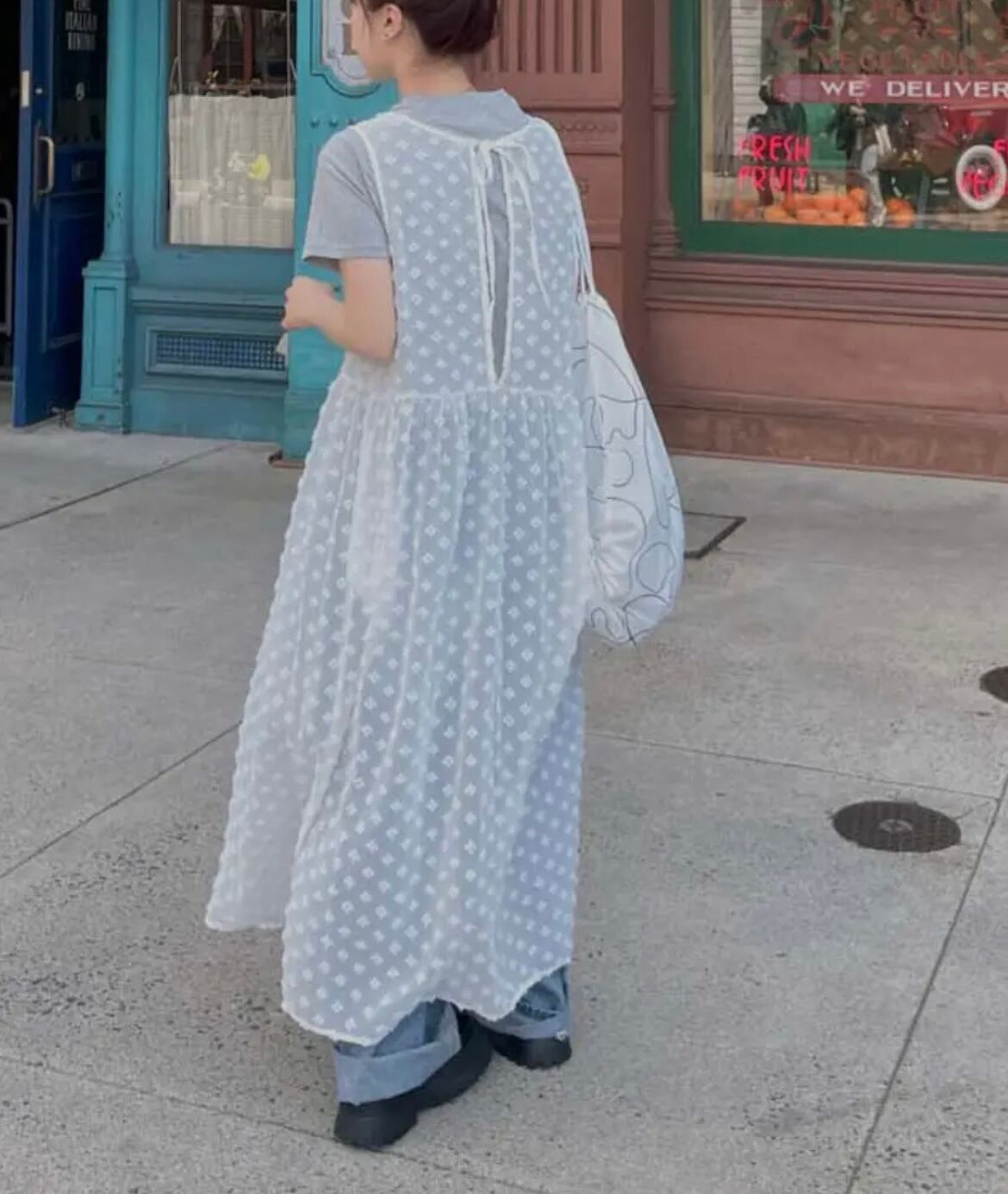 バックリボンシアーワンピース