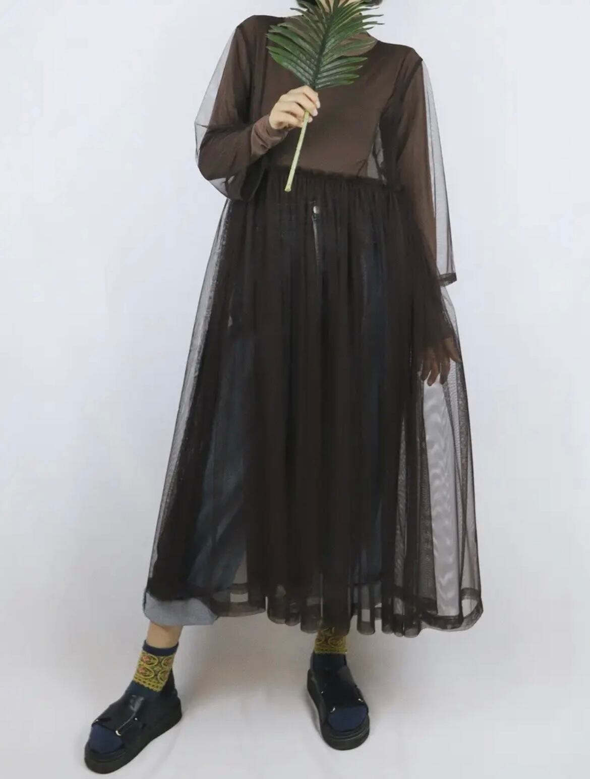 七分丈シアーチュールワンピース