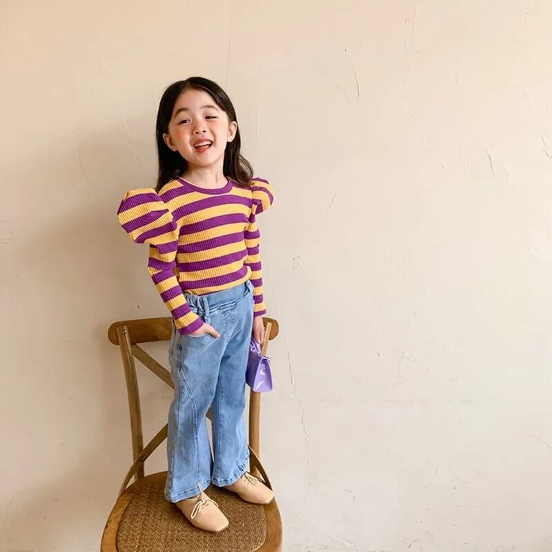 5size / キッズサイズパフスリーブボーダーニットトップス