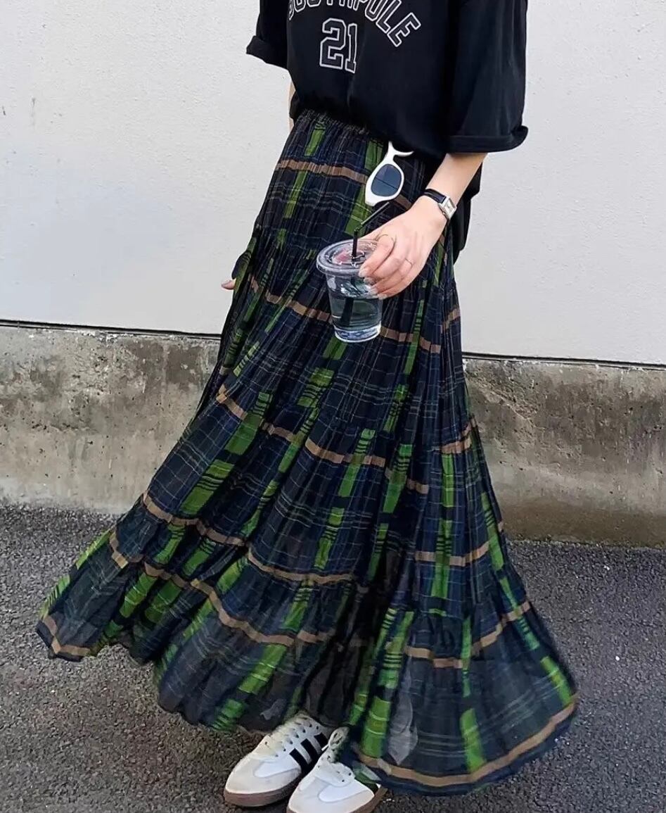 グリーンチェックロングスカート