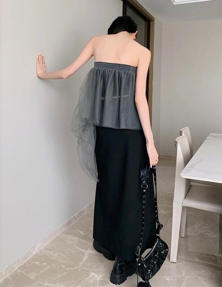 アシメントリーベアチュールトップス