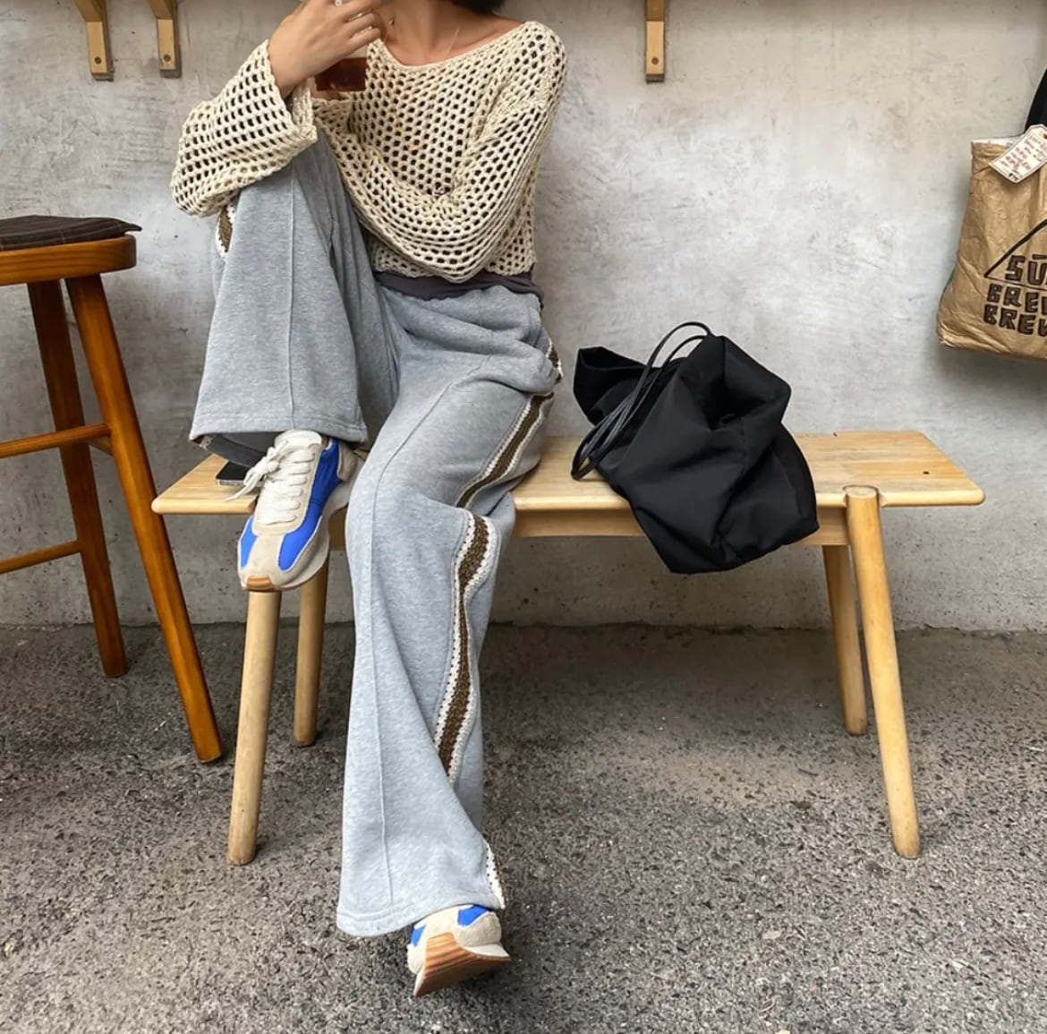 2color / サイドレースステッチスウェットパンツ