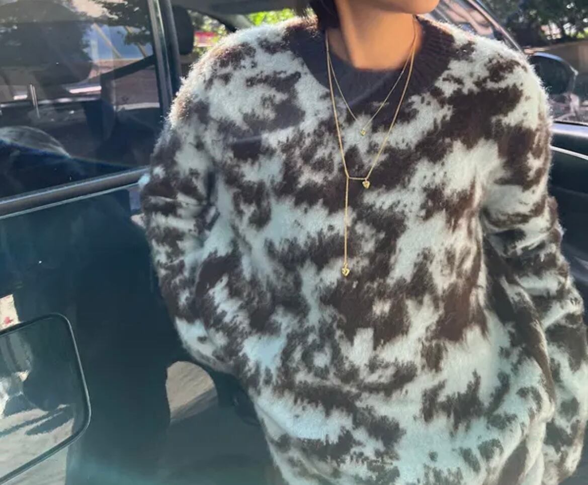 2color / クルーネックレオパードニット