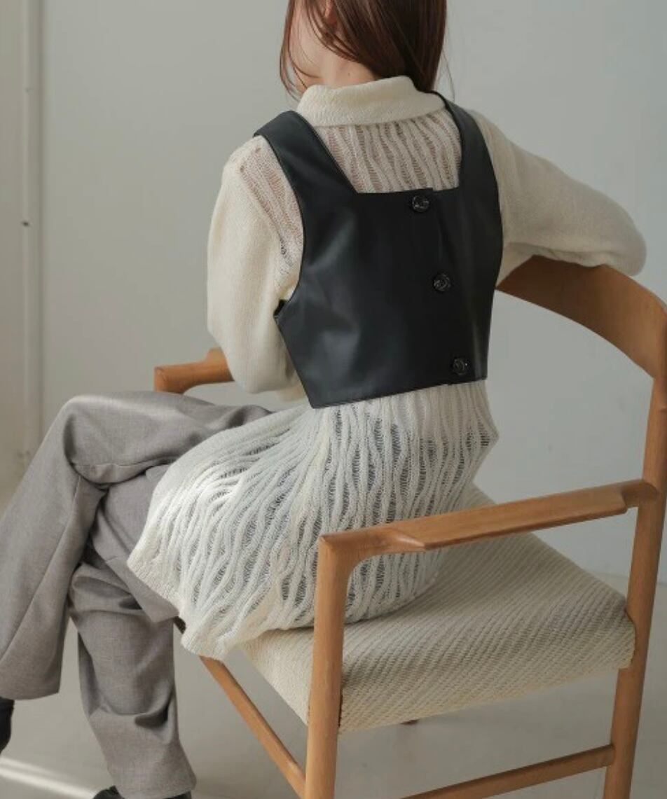 普段のコーディネートにクールなアクセントを利かせるレザー調のビスチェ。シンプルなデザインとシルエットで気軽にトレンドを取り入れることができるアイテムです。無地とフロントボタンの前後2WAY仕様で、その日の気分やレイヤードするアイテムによってデザインを変えて楽しめます。短めの丈でスタイルアップ効果も期待でき、ハンサムな印象を引き出してくれます。