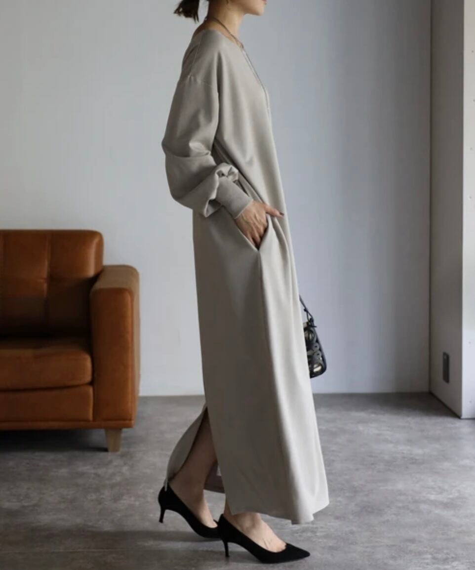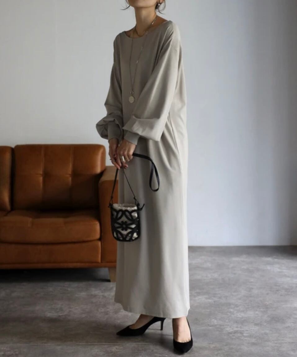 上品な表面感のもっちりしたポンチ素材が高見えなカットソーワンピース。