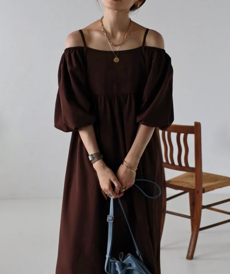 ボリュームスリーブが可愛い!1枚で着映えるオフショルワンピース