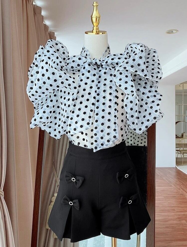 2color / パフスリーブドットシアーブラウス
