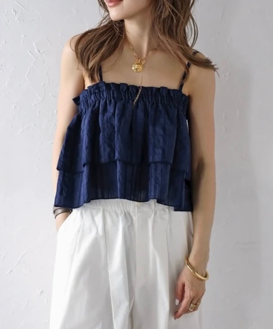 ティアードの程よいボリュームが大人可愛い、軽やかなビスチェトップス。