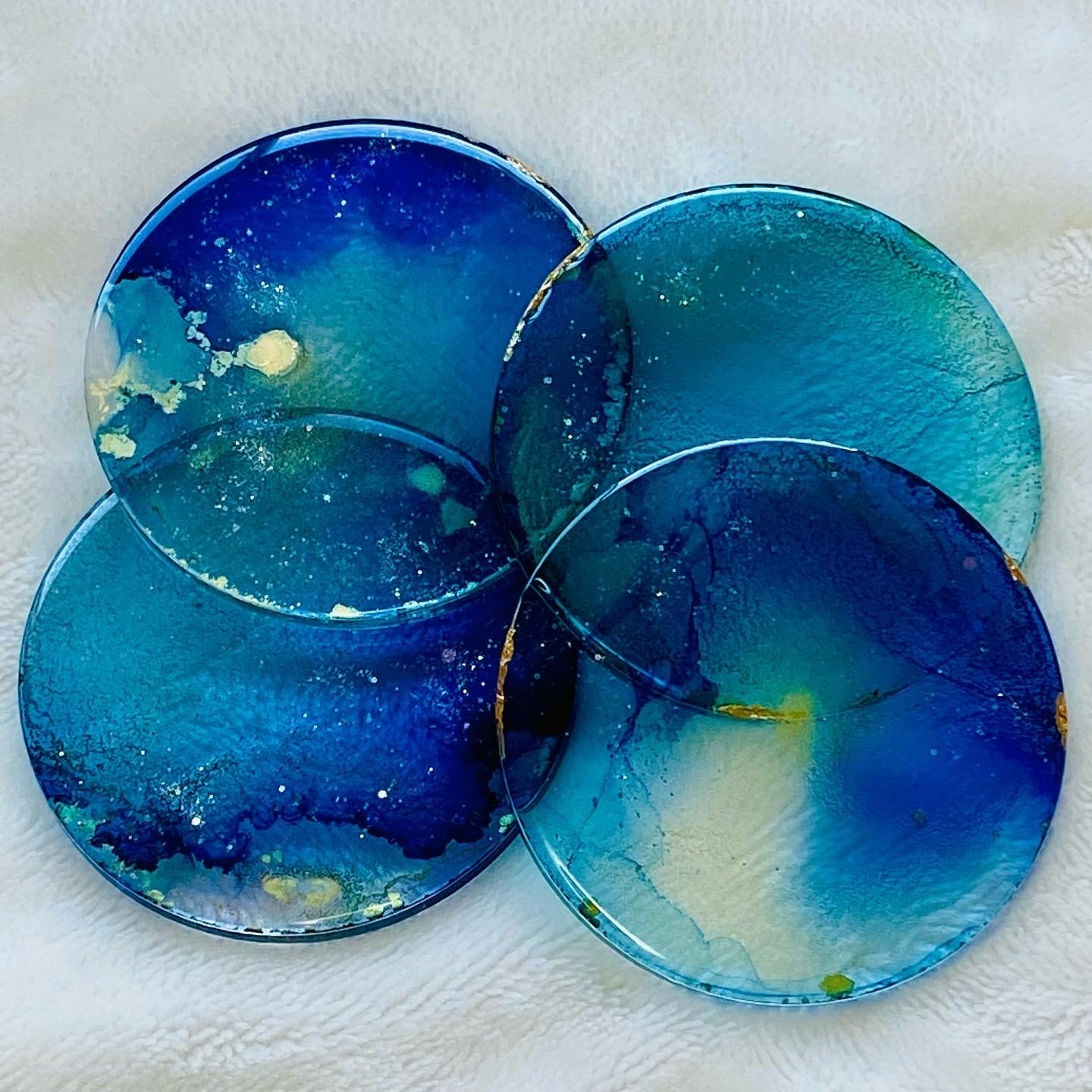#沖縄 #アルコールインク #リゾートインテリア #青 #青が好き #インテリ雑貨 #コースター
